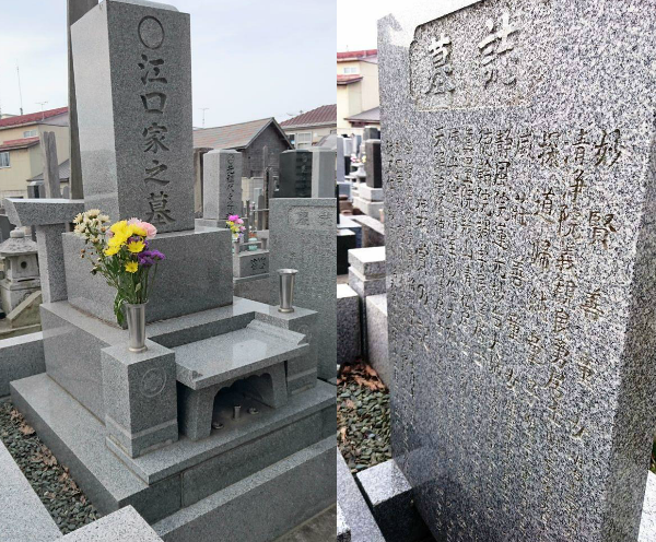 1977(昭和52)江口、日本女子体育短期大学退任、同大学名誉教授。同年12月25日、胃潰瘍手術後の内臓諸器官不全のため永眠。こちらに納骨されました。天踊院隆徳松翁清居士